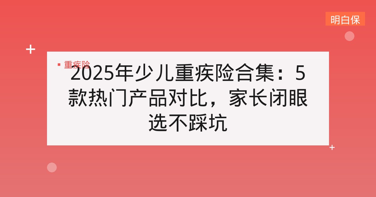2025年少儿重疾险合集:5款热门产品对比,家长闭眼选不踩坑 标题:2025年少儿重疾险合集:5款热门产品对比,家长闭眼选不踩坑 内容: 给孩子买重疾险,简直是“甜蜜的负担”! 一边... 📅 2025-10-30 👁 18