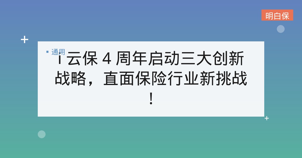 i 云保 4 周年启动三大创新战略,直面保险行业新挑战! 受疫情影响,一季度很多保险代理人无法进行线下展业,但在线投保的互联网保险产品逆势增长。 银保监会数据显示,2020 年一... 📅 2025-11-11 👁 69