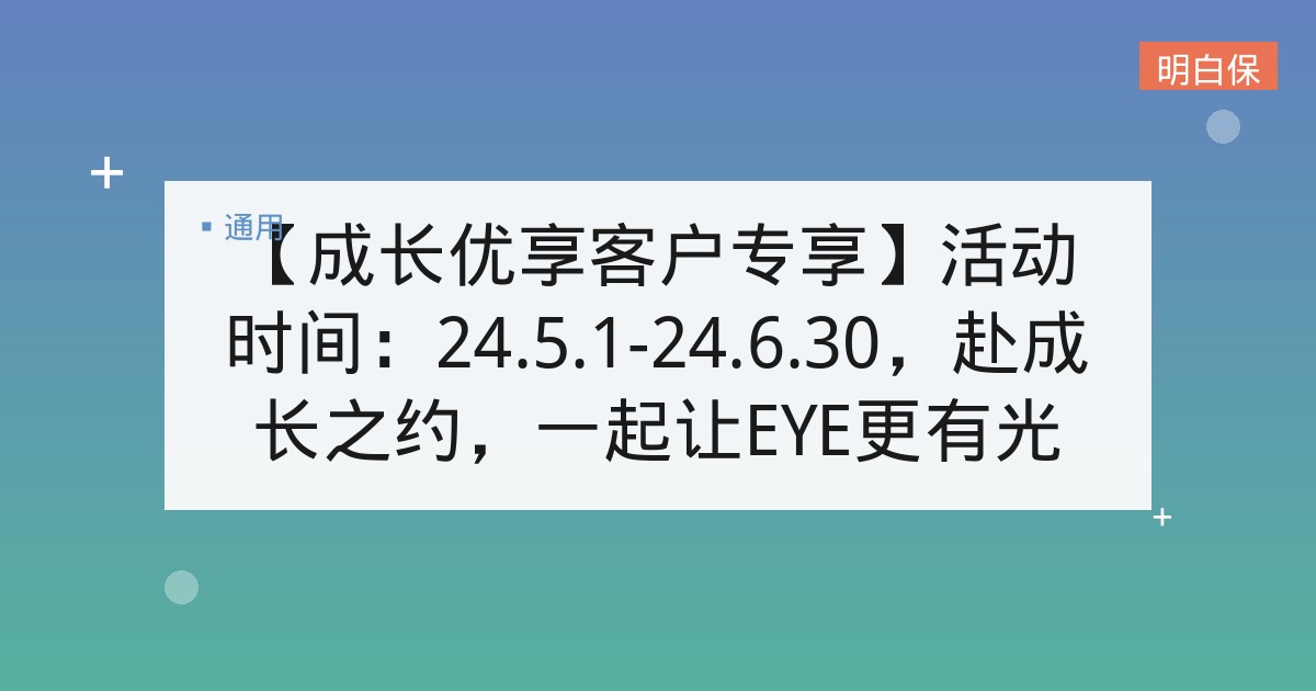 【成长优享客户专享】活动时间:24.5.1-24.6.30,赴成长之约,一起让EYE更有光,眼科义诊活动。 成长优享客户专享 | 赴成长之约,一起让EYE更有光 【成长优享客户专享】赴成长之约,一起让EYE更有光:一次值得关注的... 📅 2026-01-16 👁 24