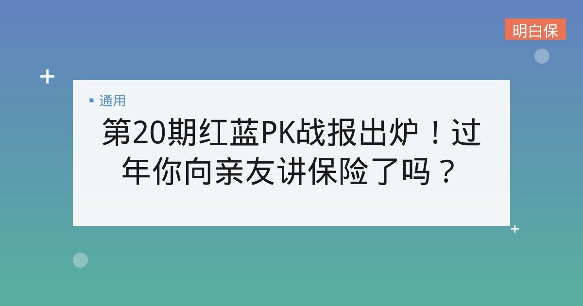 第20期红蓝PK战报出炉!过年你向亲友讲保险了吗? 【拍照,晒年味,赢积分】活动正在进行中,点此参加 第20期PK结果:过年你会向亲友讲保险吗? 上周的第20期红蓝PK战报... 📅 2026-01-14 👁 27