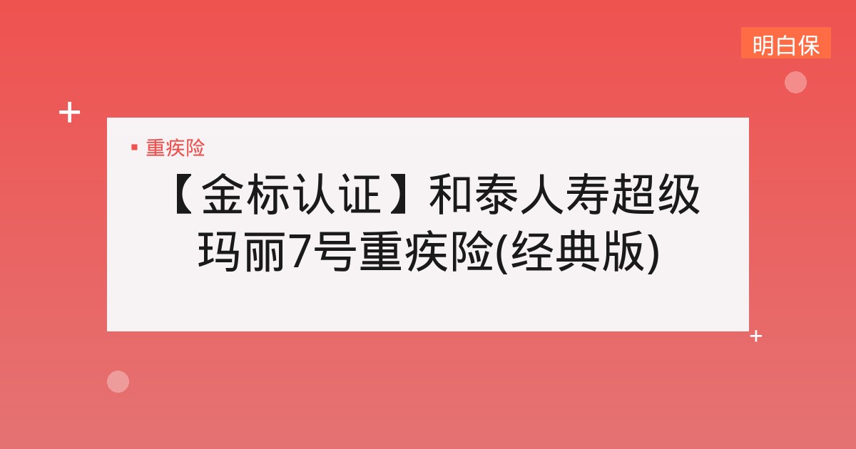 【金标认证】和泰人寿超级玛丽7号重疾险(经典版) 【金标认证】和泰人寿超级玛丽7号重疾险(经典版)深度解析 【金标认证】和泰人寿超级玛丽7号重疾险(经典版):一款“能长大... 📅 2025-12-14 👁 37