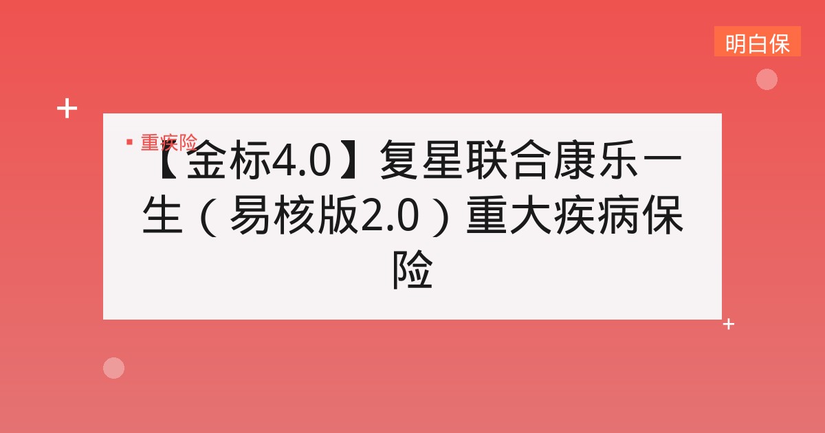 【金标4.0】复星联合康乐一生(易核版2.0)重大疾病保险 【金标4.0】复星联合康乐一生(易核版2.0)重大疾病保险深度解析 【金标4.0】复星联合康乐一生(易核版2.0)重大疾... 📅 2025-12-10 👁 38