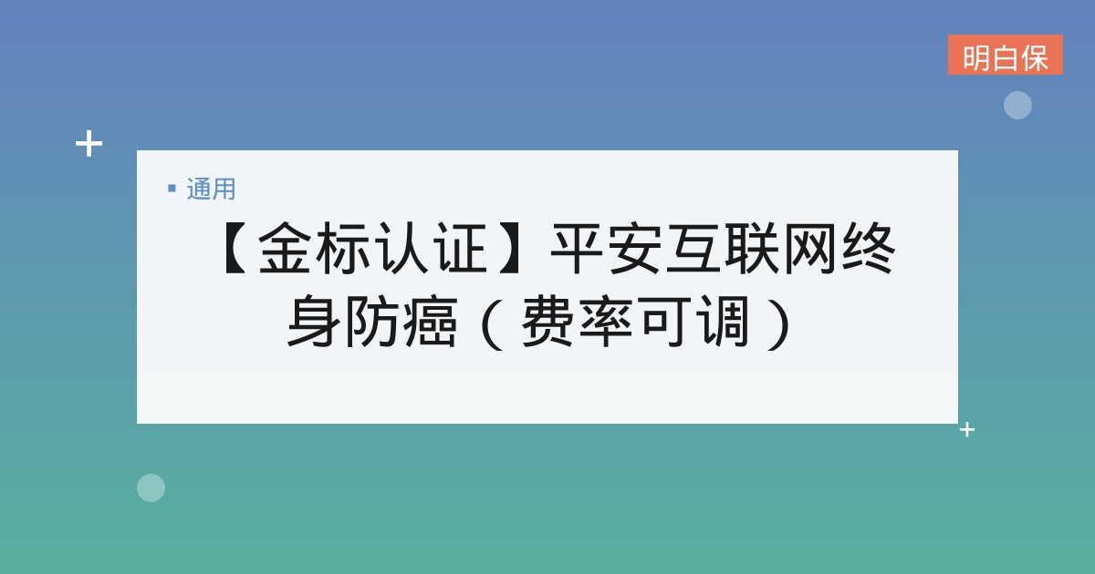 【金标认证】平安互联网终身防癌(费率可调) 【金标认证】平安互联网终身防癌(费率可调)深度解析 【金标认证】平安互联网终身防癌(费率可调):一份可以陪伴终身的抗癌保... 📅 2025-12-10 👁 28
