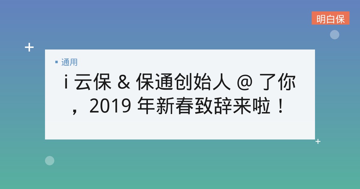 i 云保 & 保通创始人 @ 了你,2019 年新春致辞来啦! i云保 & 保通创始人新春致辞:回顾2019,共启保险科技新篇章 i云保 & 保通创始人新春致辞:回... 📅 2025-12-10 👁 32