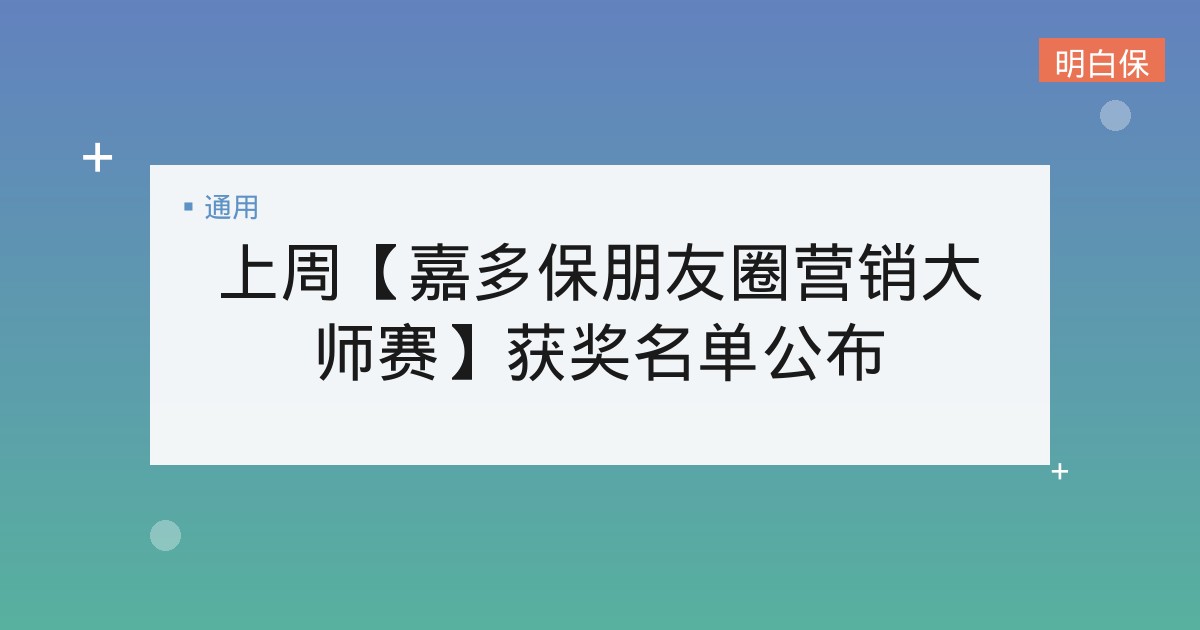 上周【嘉多保朋友圈营销大师赛】获奖名单公布 上周头条发起“嘉多保朋友圈营销大师赛”活动已经结束啦!老师们都贡献了非常精彩的文案,我们从中精选了10篇。 以下获奖名单... 📅 2025-12-04 👁 26