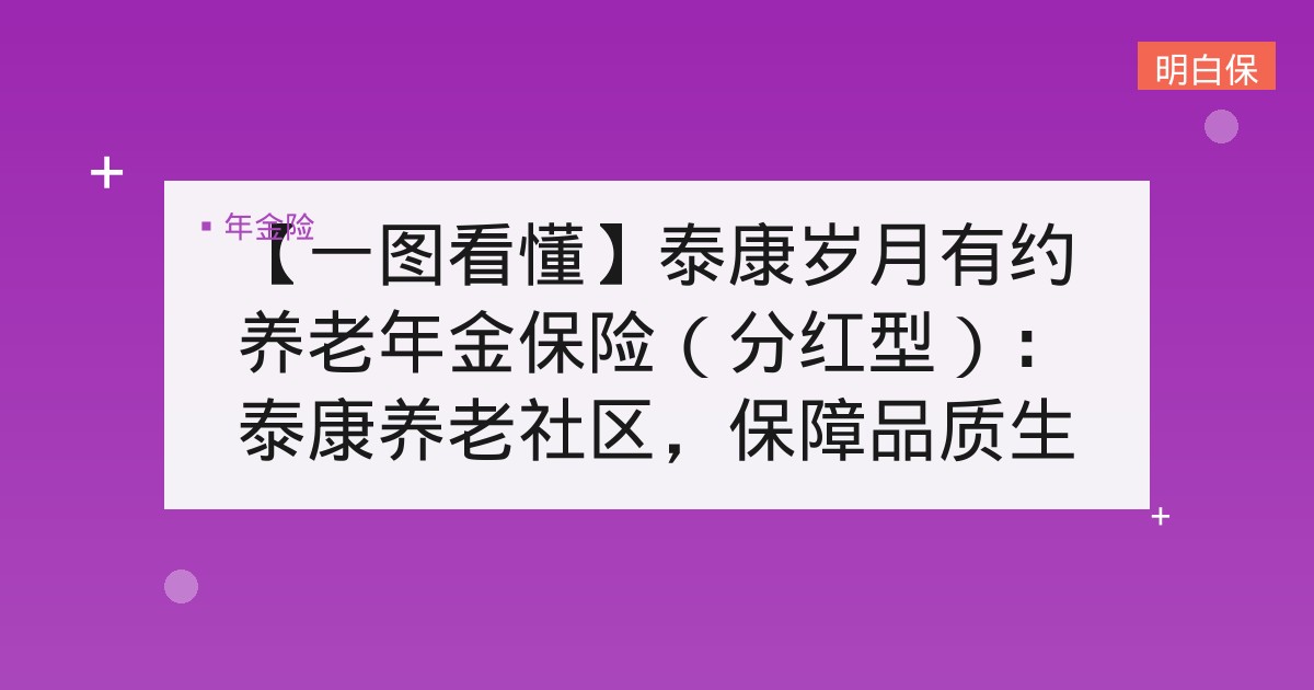 【一图看懂】泰康岁月有约养老年金保险(分红型):泰康养老社区,保障品质生活 泰康养老社区,保障品质生活 【一图看懂】泰康岁月有约养老年金保险(分红型):泰康养老社区,保障品质生活 【一图看懂】泰康... 📅 2025-12-04 👁 35