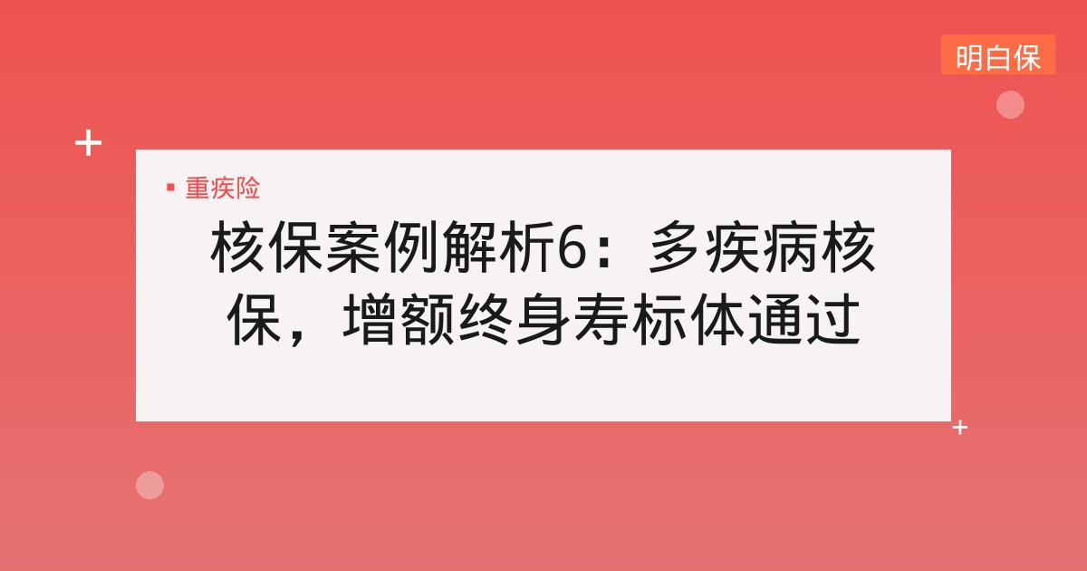 核保案例解析6:多疾病核保,增额终身寿标体通过 核保案例解析6:多疾病核保,增额终身寿标体通过 核保案例解析6:多疾病核保,增额终身寿标体通过 你好,朋友。今天我们来聊... 📅 2025-12-12 👁 28