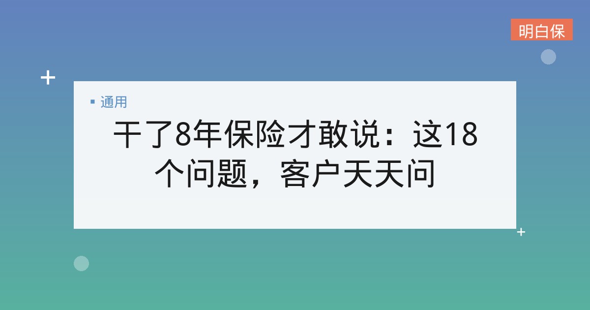 干了8年保险才敢说:这18个问题,客户天天问 一个卖了8年保险的代理人,用大白话复盘客户最常问的18个问题。从“保险公司倒闭怎么办”到“理赔难不难”,不绕弯子,全是实... 📅 2026-03-05 👁 30 📁 年金险与养老
