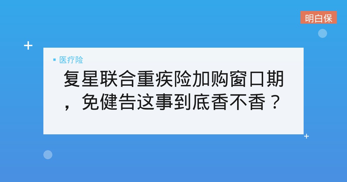 复星联合重疾险加购窗口期,免健告这事到底香不香? 复星联合重疾险老客户限时免健康告知加保政策解读。说人话分析政策亮点、适用人群和潜在坑点,帮你判断是否值得为“免健告”和“... 📅 2026-03-03 👁 15 📁 医疗险, 重疾险