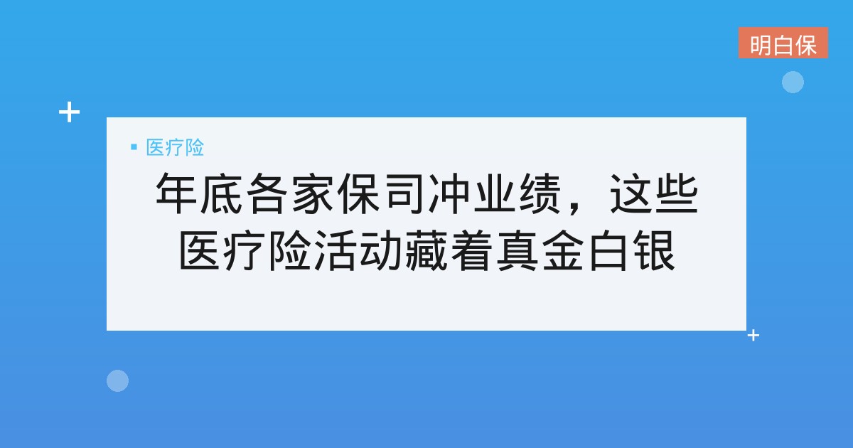 年底各家保司冲业绩,这些医疗险活动藏着真金白银 干了8年保险的代理人直言:年底各家保司冲业绩,中高端医疗险活动藏着真福利。但别光看奖励,看懂保司算盘、避开常见坑、按需求... 📅 2026-03-04 👁 28 📁 医疗险