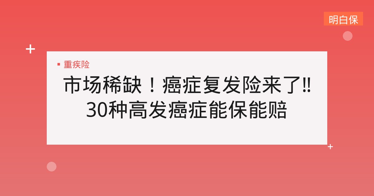 市场稀缺!癌症复发险来了‼️30种高发癌症能保能赔 众所周知,得过癌症,保险非常难买,99.9%的健康险都会直接拒保! 个别能买的产品,也不保原有癌症的复发、转移! 但癌症... 📅 2025-11-15 👁 26
