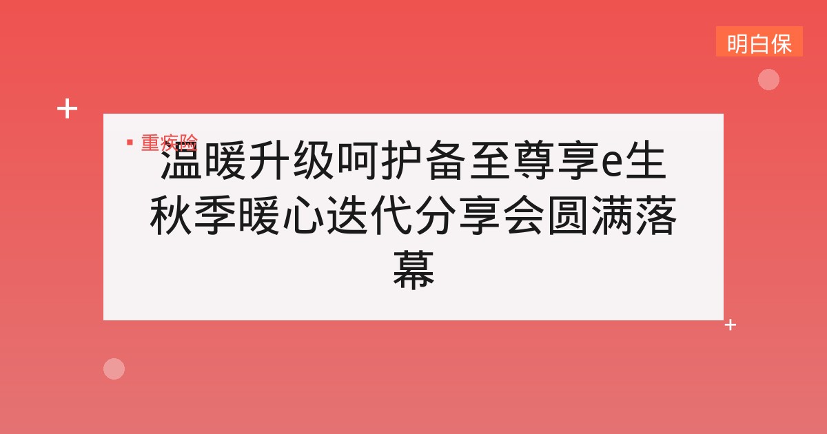 温暖升级呵护备至尊享e生秋季暖心迭代分享会圆满落幕 尊享e生自上市以来,众安保险始终怀揣解决让国民病不起的初心,帮助千千万万的用户,在意外、疾病风险之前,重拾生活的勇气和生... 📅 2025-12-20 👁 31
