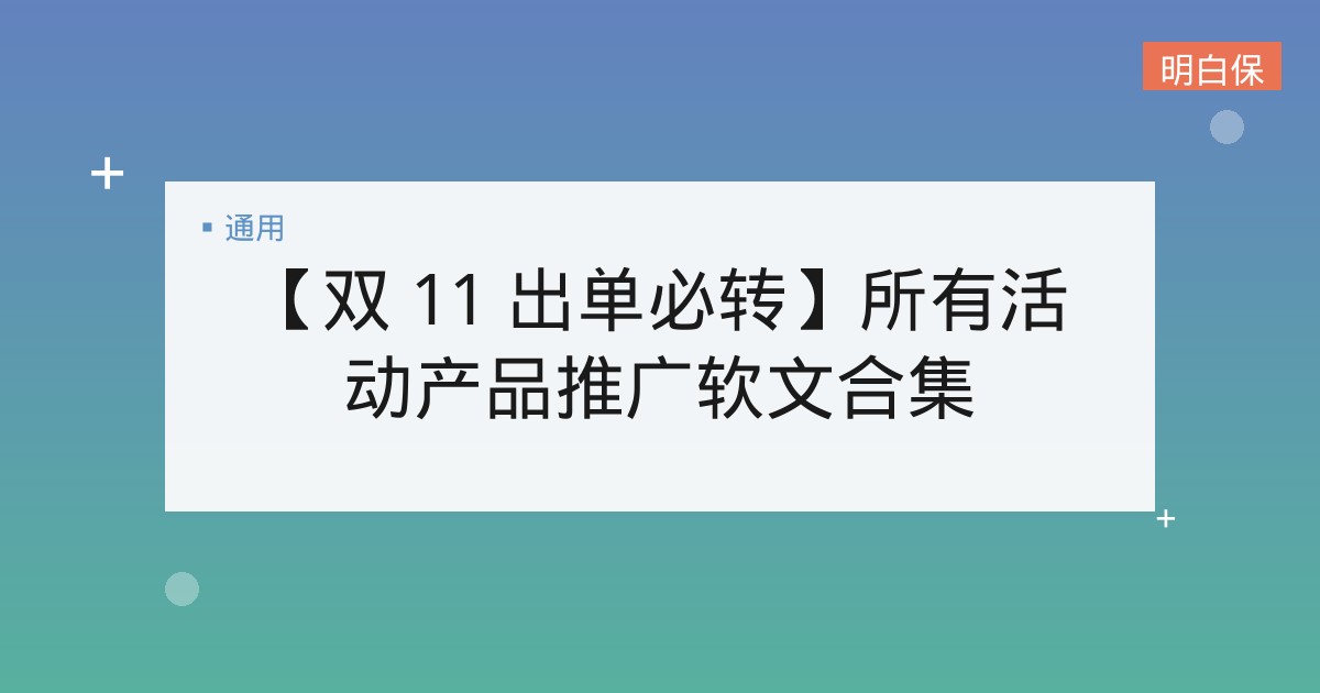 【双 11 出单必转】所有活动产品推广软文合集 对于即将到来的双十一,老师们是否已经摩拳擦掌准备大干一场啦? 为了给老师们的战绩助力,我们特别整理了双十一活动期间所有活... 📅 2026-02-15 👁 39