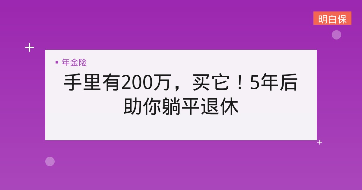 手里有200万,买它!5年后助你躺平退休 攒够一笔钱,从此躺平退休,这是很多人的终极梦想! 保通携手长城人寿携手打造的IP定制产品——成康2号尊享年金保险(长城八... 📅 2026-02-01 👁 19