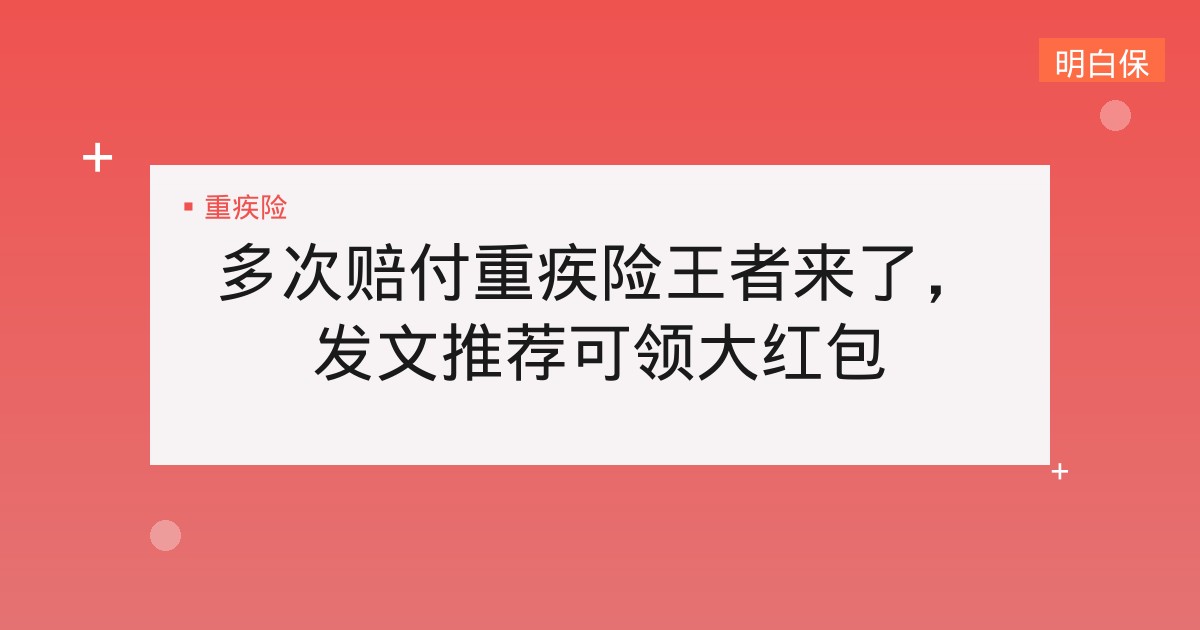 多次赔付重疾险王者来了,发文推荐可领大红包 “保险消费升级”,虽然也考虑单次重疾险的性价比,但现在更多人愿意多花20%的钱获得全面保障多次赔付的重疾险 近期,就又一... 📅 2025-12-01 👁 23